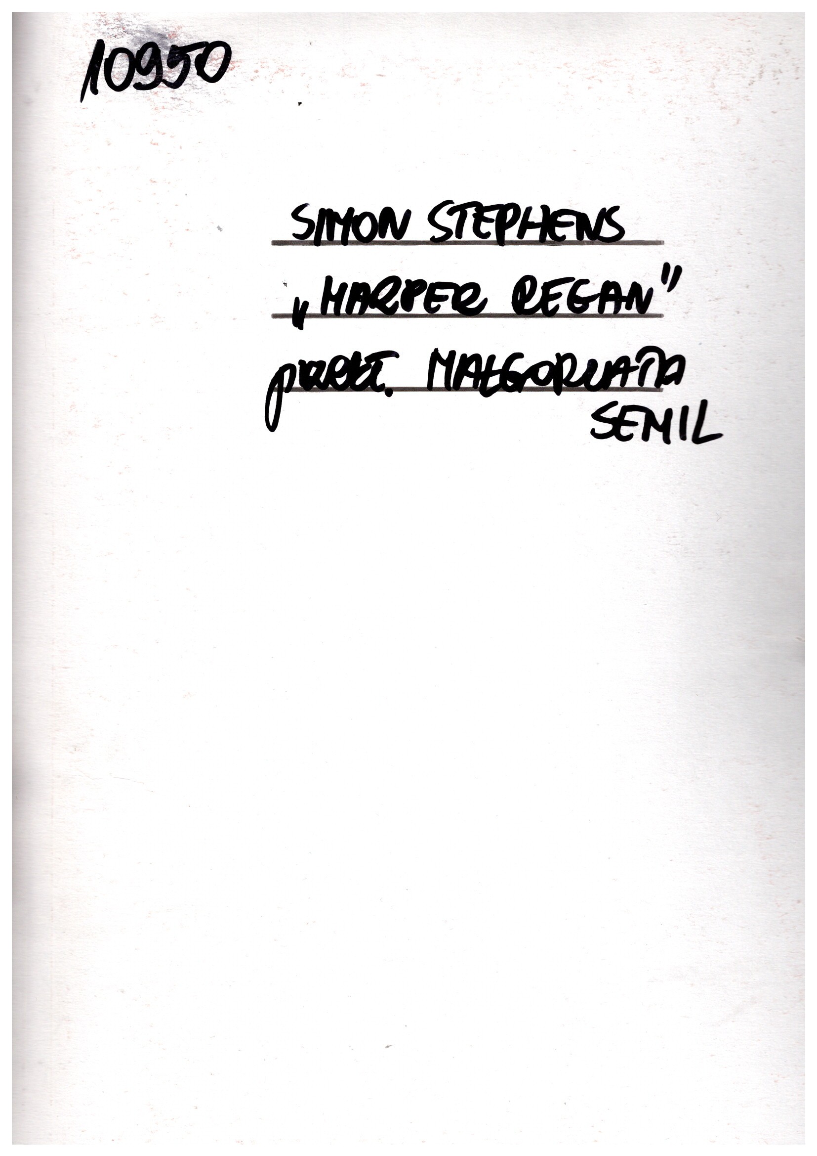 Harper Regan / Simon Stephens; przełożyła Małgorzata Semil. W: Dialog. - 2010, nr 12, s. 139-184. - Warszawa : Instytut Książki, 2010. - 139-184 strony ; 23 cm.