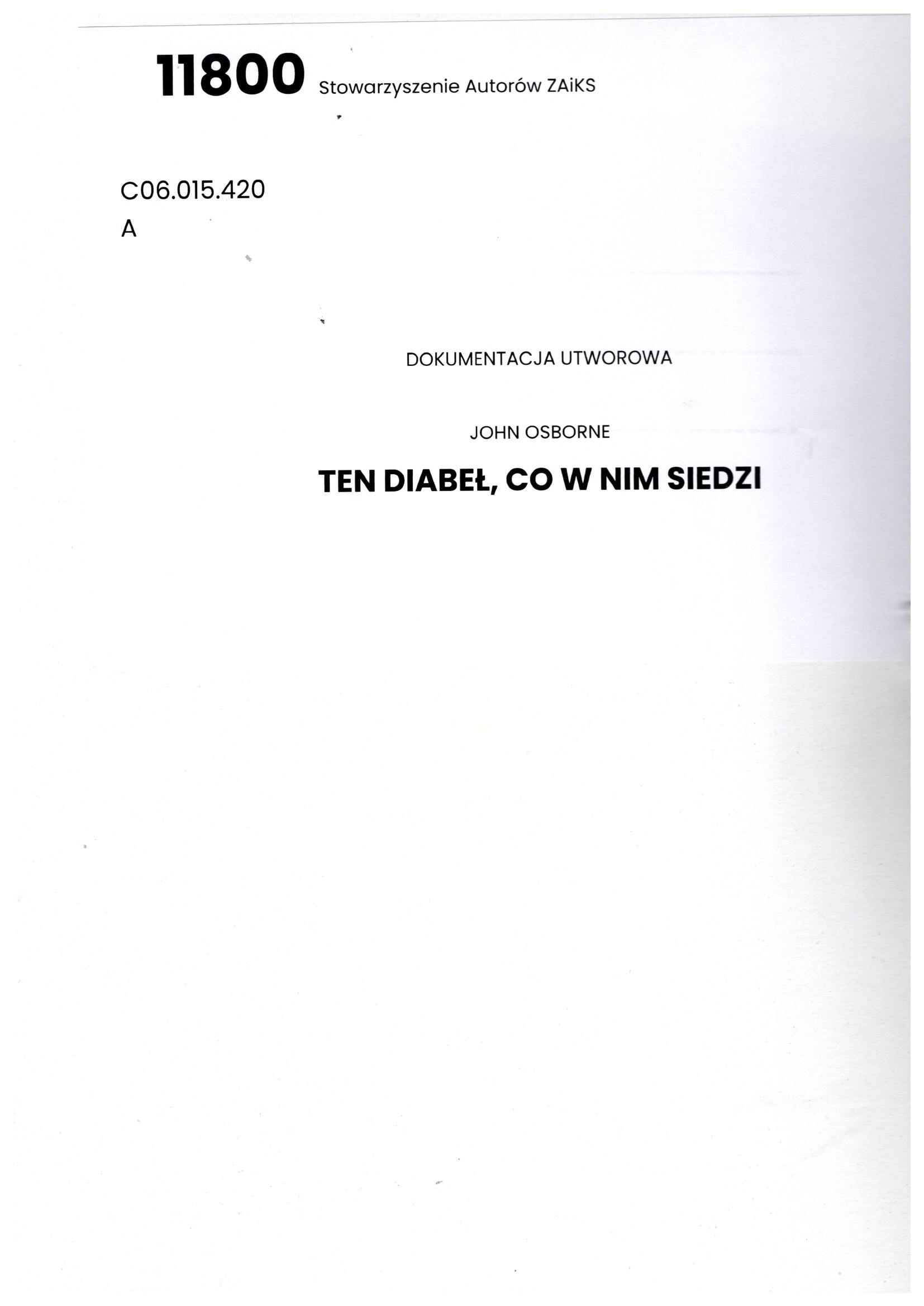 Ten diabeł, co w nim siedzi / John Osborne; tłumaczenie Małgorzata Semil. W: Dialog (Warszawa ; 1956). 0012-2041. R. 59, nr 12 (2014), s. 120-171. - Kraków : Instytut Książki, 2014. - 120-171 strony ; 23 cm.