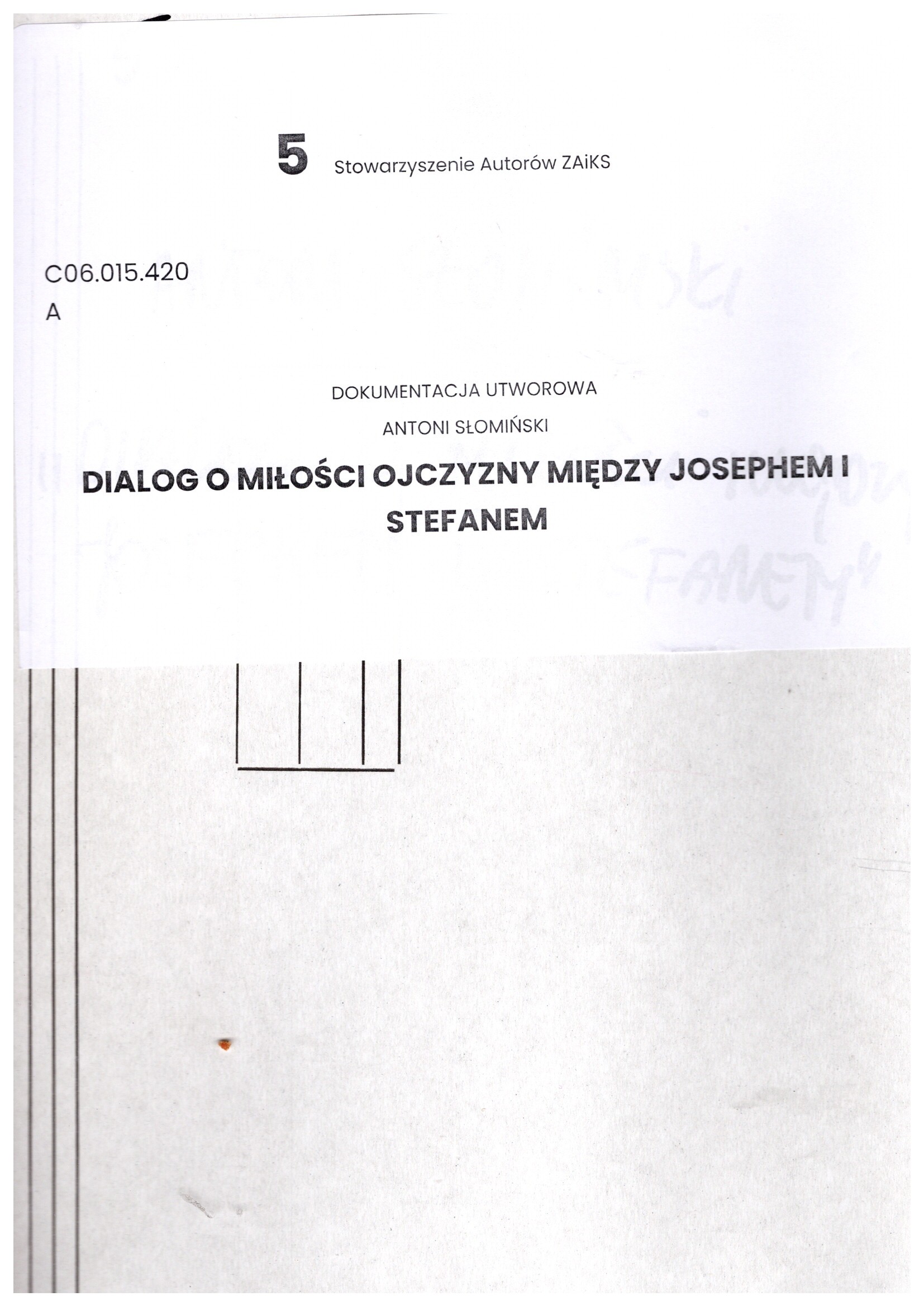 Jest to relacja, niemal faktograficzny zapis z życia współczesnego mężczyzny po trzydziestce. Wypełniają ją dwie rozmowy : z żonę i ojcem rozdzielający te dwa dialogi sen o spotkaniu z matką, zmarła jeszcze w czasach dzieciństwa bohatera w szpitalu psychiatrycznym. Sekwencja koszmarnego, obsesyjnego snu, wprawdzie całkowicie odbiega stylistycznie od okalających ją drobiazgowo realistycznych scen z żonę i ojcem ale zarazem stanowi klucz do całej sztuki, odsłania zakamarki jego psychiki, to wszystko, co nie zostało dopowiedziane w planie realnym. Bohater zdobyĹ? sobie względną stabilizacją i stosunkowo wysoką pozycją zawodowÄ? / jest pracownikiem naukowym w jakimĹ? instytucie /, założył rodzinÄ?, ma dziecko. A jednak jest połamańcem życiowym, zagubionym, samotnym, na swój sposób zdesperowanym. Małżeństwo funkcjonuje Ĺşle, w szarej, wypełnionej kłopotami codziennej egzystencji rozsypało się wszystko, małżonkowie są zniechęceni do siebie, prowadzÄ? wspólne życie już tylko siła inercji. Teraz nie wiadomo nawet kogo winić za ten rozkład. W bahaterze, człowieku przecież dorosłym ciągle tkwi obsesja nieszczęśliwego dzieciństwa. I oto zjawia się ojciec, sprawca wszystkich nieszczęść, jakie spotkały bohatera w dziecinstwie. Przed laty porzuciĹ? matką wyjechaĹ? za granicą, zapomniaĹ? o synu. Teraz przyjechaĹ?, by odegrać komediÄ? uczuÄ? rodzinnych. Jest po prostu - jak się okazuje - starym, zakłamanym kabotynem. Nie spełniają się oczekiwania bohatera instynktownie szukającego oparcia i potwierdzenia siebie w kimĹ? bliskim. Rozwiewa się ostatnia od lat nie gasnąca nadzieja, że przyjdzie dzieł , kiedy skończy się samotność i poczucie osaczenia. Źródło : Nowe Sztuki Biuletyn Informacyjny nr 14/77 Agencja Autorska.